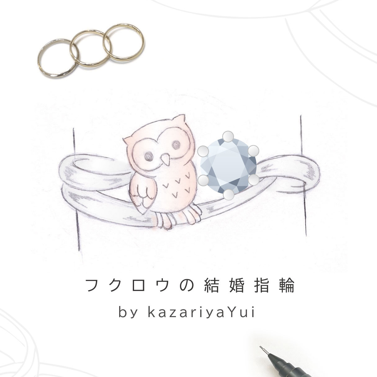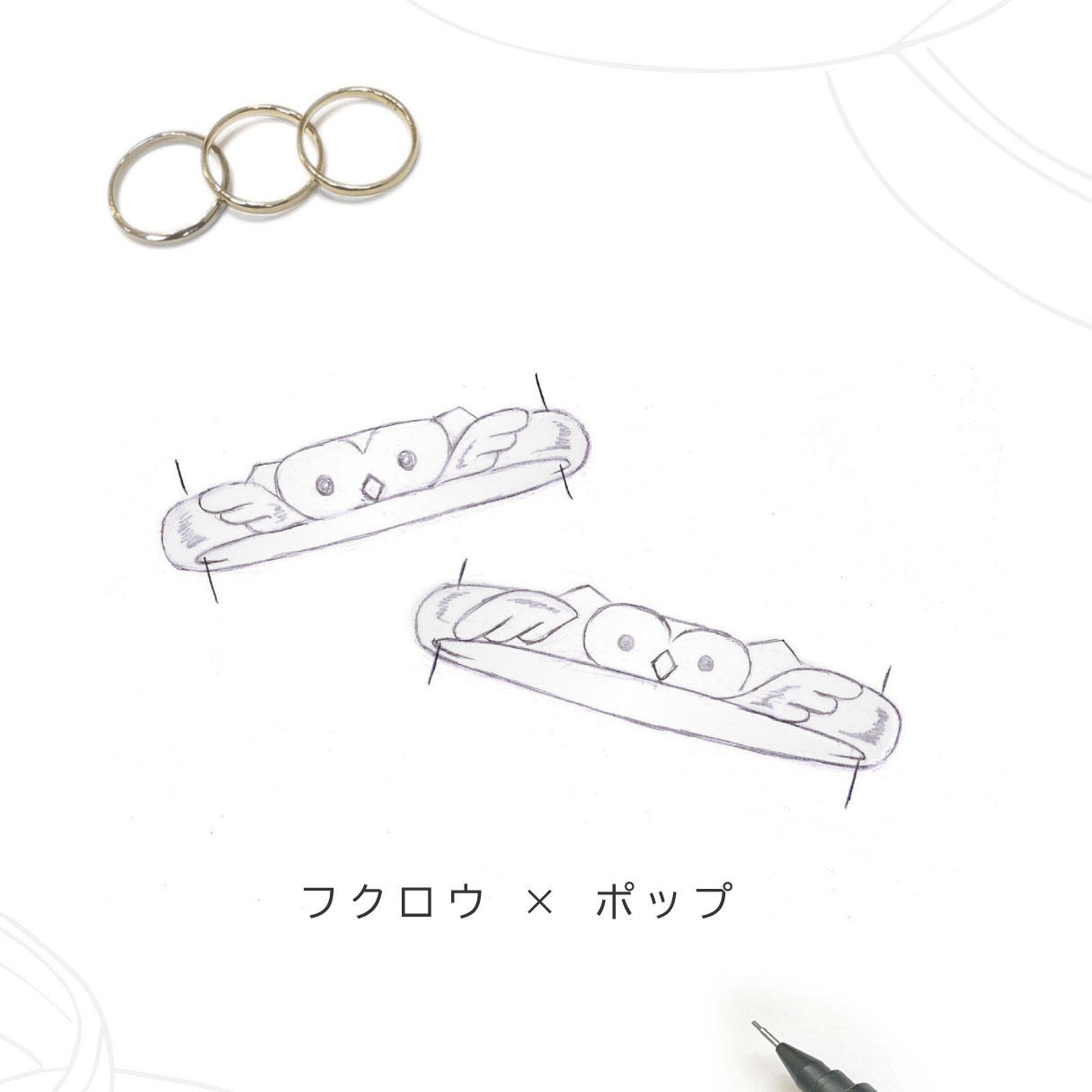 今回ご紹介するのは、フクロウをモチーフにした結婚指輪です。