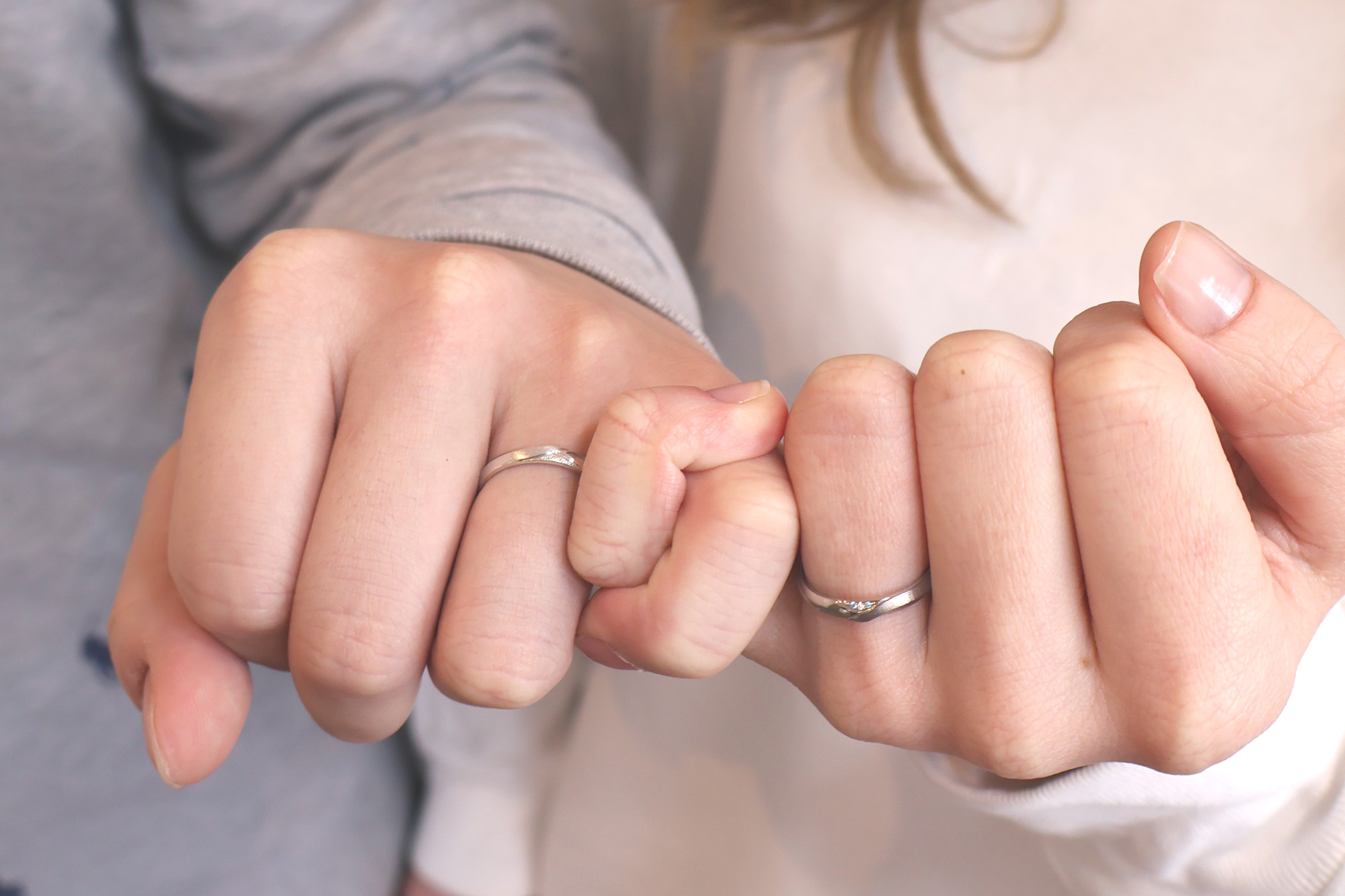 完成した指輪は、想像していた以上に綺麗で本当に感動しましたふたりとも大満足です。素敵な指輪を本当にありがとうございました」